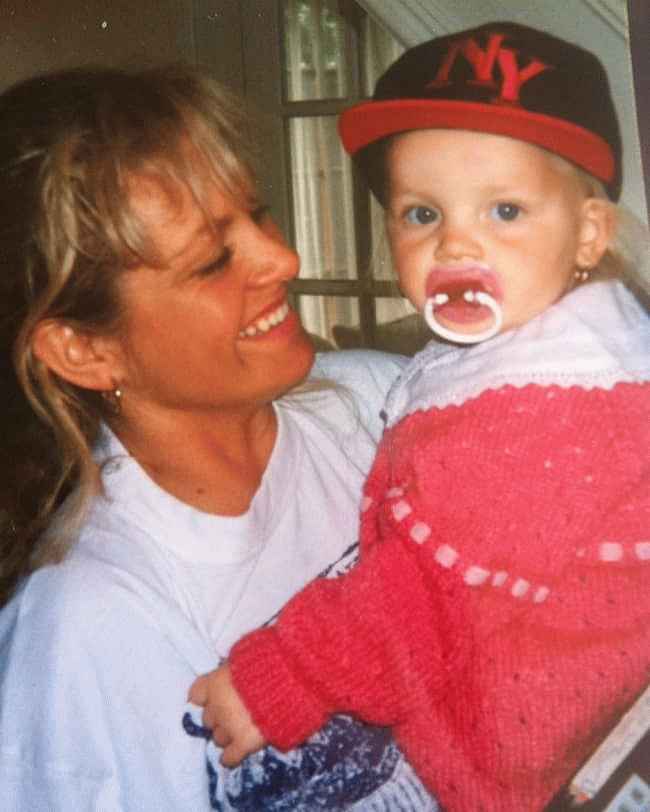 图片说明:佩里·爱德华兹 (Perrie Edwards) 小时候和她的母亲在一起(来源:Instagram)