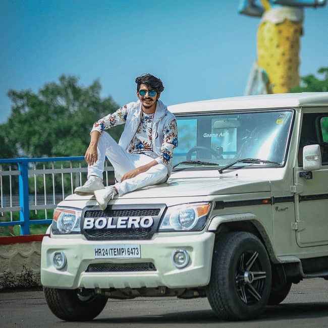 图片说明:Gulzaar 在他的 Scorpio 汽车上(来源:Instagram)