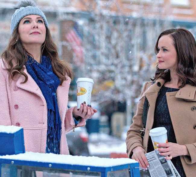 图片说明:Alexis Bledel 和 Lauren Graham 在现场拍摄(来源:Glamour)