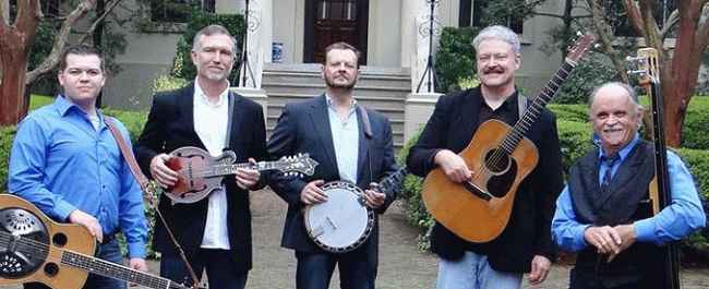 图片说明:Tim Stafford 和他的乐队成员 Blue Highway 从左到右(Gaven Largent、Shawn Lane、Jason Burleson、Tim Stafford 和 Wayne Taylor)(来源:Bluehighwayband)