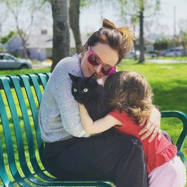 图片说明:Liz Stewart 与她的女儿 Ripley 和他们的宠物猫的照片。来源:Instagram