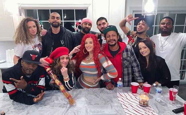 图片说明:Justina Valentine 于 2019 年与她的公司在圣诞晚宴上。来源:Instagram