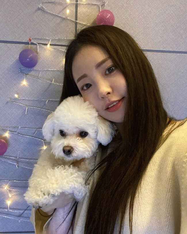 图片说明:Yujeong 与她的宠物狗自拍。来源:Instagram