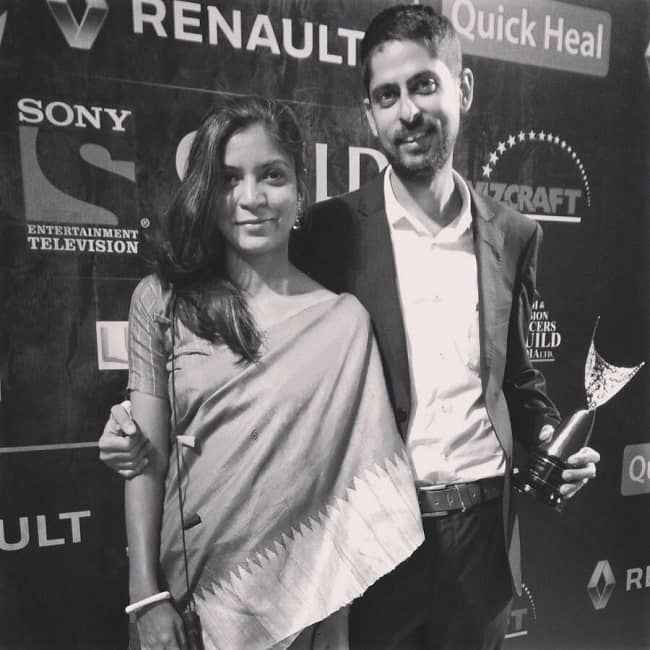 图片说明:Varun Grover 在获得索尼协会奖后与妻子合影(来源:Instagram)