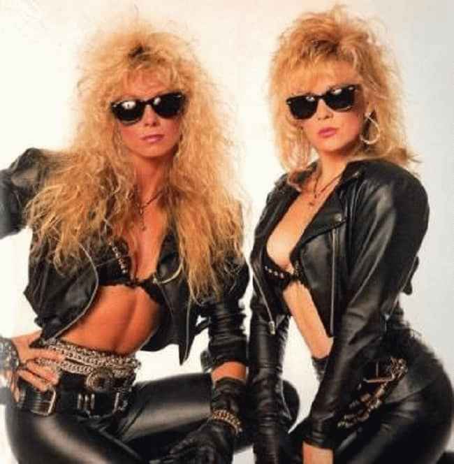 图片说明:Emi Canyn 与 Donna McDaniels 合影,作为 Motley Crue 的 Nasty Habits 的一部分(来源:Eerie Cris Jukebox)