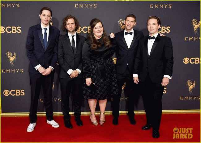 图片说明:Pete Davidson、Aidy Bryant 和更多“周六夜现场”明星登上艾美奖 2017 年红地毯!,来源:Just Jared
