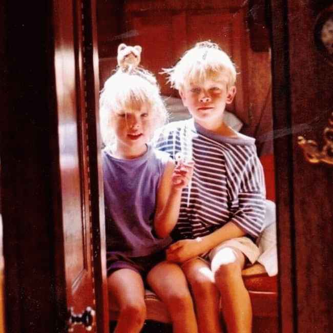 图片说明:Thomas Elms 和她的妹妹小时候(来源:Instagram)