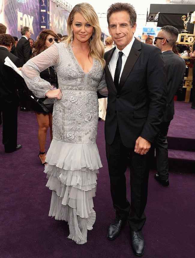 图片说明:克里斯汀·泰勒与本·斯蒂勒一起出席艾美奖颁奖典礼。 (来源:谷歌)