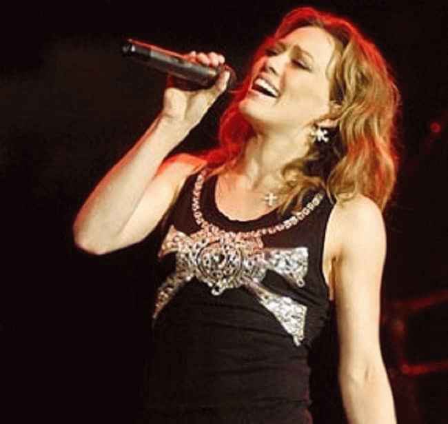 希拉里·达芙 (Hilary Duff) 在她的现场音乐会上演唱(来源:Pintrest.com)